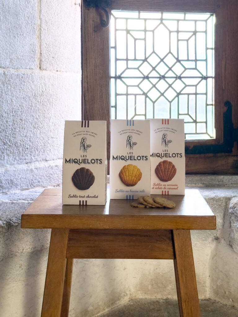 Les Miquelots Sablés des fraternités monastiques de Jérusalem au Mont Saint-Michel Sablés au beurre salé Sablés au sarrasin et éclats de caramel Sablés tout chocolat